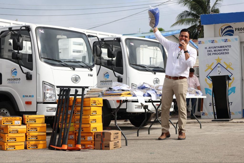 En un ambiente de camaradería, el alcalde entregó equipo, herramientas, vehículos y uniformes a las mujeres y hombres que, día a día, contribuyen al desarrollo y mantenimiento de Progreso.
