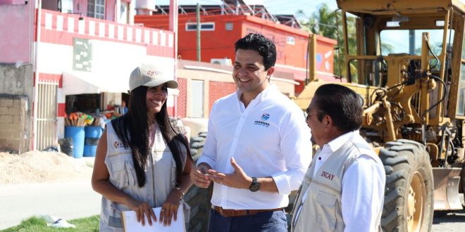 Progreso, Yucatán, a 22 de octubre de 2025.-“Estaremos atendiendo el corazón comercial de Flamboyanes con la reconstrucción de su avenida principal”, resaltó el alcalde Erik Rihani González al dar el banderazo de inicio a las obras de reconstrucción de calles, acompañado del director del Instituto de Infraestructura Carretera de Yucatán (INCAY), Ángel Pérez Medrano, y de la secretaria de Infraestructura para el Bienestar, Alaine López Briceño.