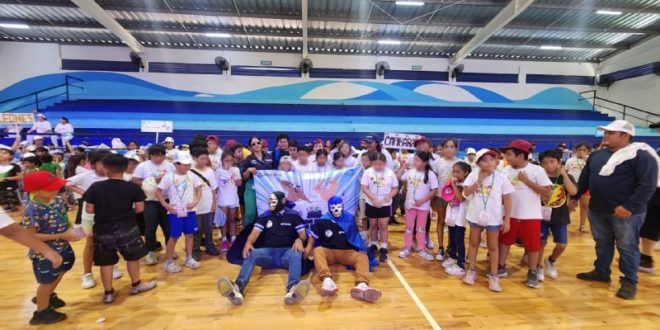 Las actividades se realizaron en la Unidad Deportiva “Arena Progreso”, como parte del campamento de verano “Báaxal Paal 2025”, e incluyeron proyecciones, juegos y la intervención especial de luchadores caracterizados, quienes transmitieron la importancia de depositar correctamente la basura y cuidar el entorno.