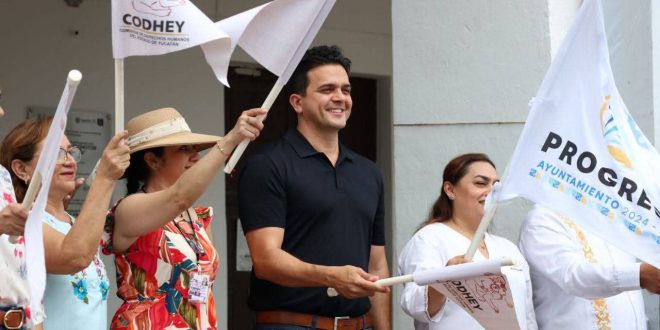 Progreso, Yucatán, a 18 de junio de 2025.-Con conferencias y actividades lúdicas dirigidas a diversos grupos sociales, esta mañana se dio el banderazo de inicio al programa “Jornadas de Derechos Humanos en tu Municipio”, encabezado por el alcalde Erik Rihani González y la secretaria ejecutiva de la Comisión de Derechos Humanos del Estado de Yucatán (CODHEY), Gretty Rubí Cerón Llanes.