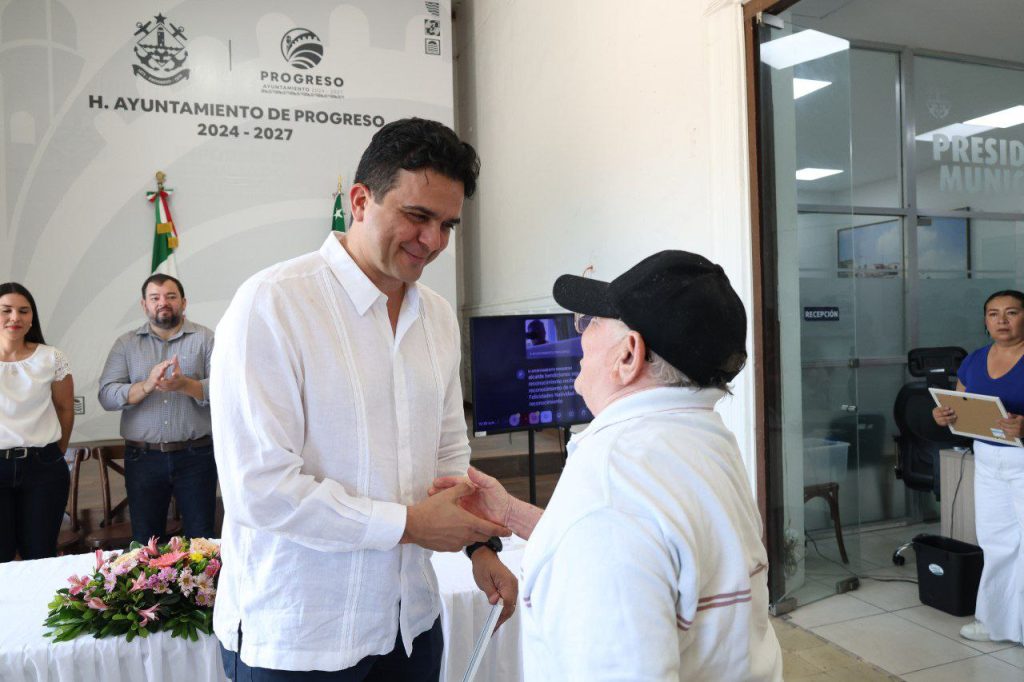 Progreso, Yucatán, a 28 de marzo de 2025. Mujeres y hombres que dedicaron más de 25 años al servicio público en el municipio fueron homenajeados esta mañana por el alcalde Erik Rihani González, en una emotiva ceremonia que marcó el inicio formal de su jubilación.