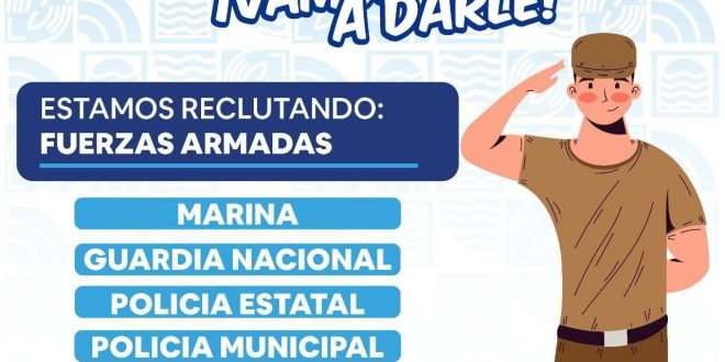 En cuanto al reclutamiento, se convocará a ciudadanas y ciudadanos interesados en integrarse a la Marina, Guardia Nacional, Policía Estatal y Municipal, así como a la Sedena.