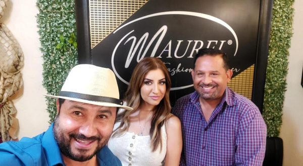 Manuel, Erika Y Mauricio (de izq. a der.) posan felices tras la reunión de dónde salió el diseño espectacular que portará la popular cantante.