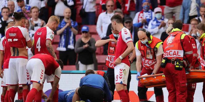 El danés se desplomó súbitamente en el césped justo antes del descanso. El partido Dinamarca-Finlandia fue interrumpido por minutos. La UEFA señaló que fue ‘suspendido por una emergencia médica’