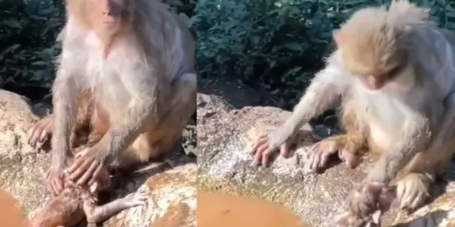 En redes sociales abundan los videos curiosos de animales, pero hay algunos que logran desatar carcajadas y debates al mismo tiempo. Eso fue justo lo que pasó con una grabación que circula en X (antes Twitter), donde una mamá mono protagoniza una escena tan peculiar como divertida: bañar a su cría como si fuera ropa.