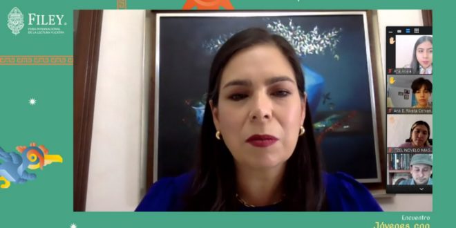 Mérida, Yucatán, a 27 de abril de 2021.- Estudiantes de la Preparatoria Estatal Número 8 “Carlos Castillo Peraza” tuvieron la oportunidad de platicar con la escritora mexicana Gabriela Riveros, como parte de las actividades de la novena edición de la Feria Internacional de la Lectura Yucatán (FILEY 2021).
