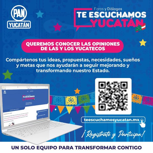 MÉRIDA, Yuc., 02 de octubre 2023.- El PAN Yucatán está listo para escuchar a todas y todos los yucatecos y recibir sus propuestas, ideas y recomendaciones a través de la plataforma teescuchamosyucatan.mx.