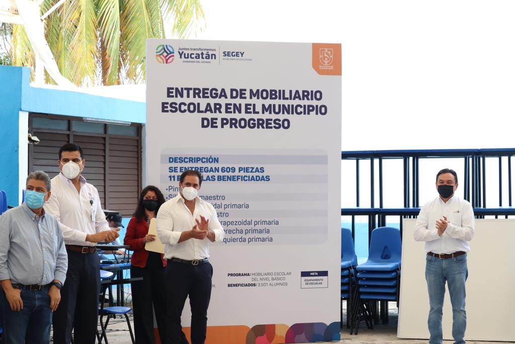 “Agradezco al gobernador Mauricio Vila por seguir apoyando a la educación y con esta entrega de mobiliario seguiremos trabajando en coordinación para un regreso seguro a clases, el cual beneficiará a más de 3 mil alumnos” Destacó el Edil.