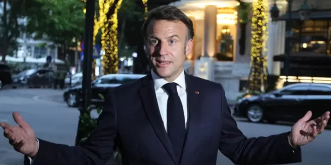 Macron parece sorprendido, se gira rápidamente y saluda a los medios, tratando de actuar con normalidad.