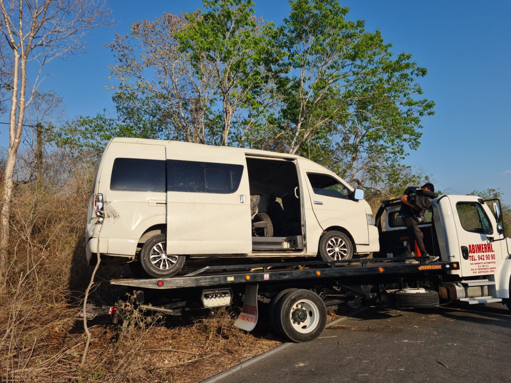 Hunucmá, Yuc., a 04 de mayo 2024.- Una fuerte salida de una camioneta de transporte de personal se dio esta tarde en el tramo estatal que enlaza este municipio con la comisaría de Texán de Palomeque, arrojando tres lesionados.