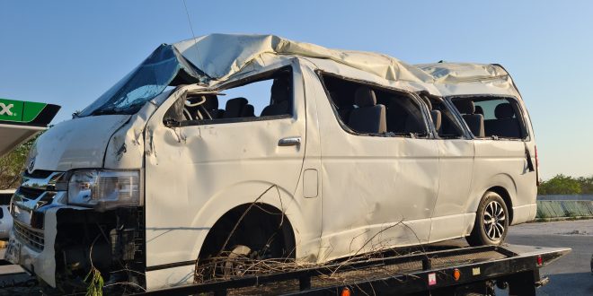 En su loca carrera hacia el monte la unidad Toyota dio un giro de 160 grados, y terminó destartalada por el costado izquierdo, así como sus ocupantes tuvieron que ser valorados y traslados al Hospital Juárez de Mérida para una mejor valoración por parte de dos ambulancias a cargo de paramédicos municipales y estatales.