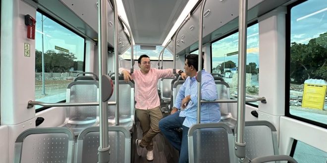 MÉRIDA, Yuc., 24 de noviembre 2023.- Con el propósito de intercambiar información y experiencias en materia de movilidad, Daniel Sibaja González, Secretario de Movilidad del Estado de México, y Rafael Hernández Kotasek, titular de la Agencia de Transporte de Yucatán, intercambiaron datos técnicos y financieros de la “Estrategia Integral del Sistema de Transporte Público Va y Ven”, que basa su sistema operativo en autobuses eléctricos de avanzadas tecnologías y amigables con el medio ambiente.