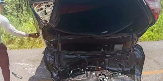 El joven conductor de nombre Jonathan de 29 años resultó lesionad0 en todo el cuerpo debido al fuerte impacto, el frente del auto quedó destrozado al igual que su joven acompañante