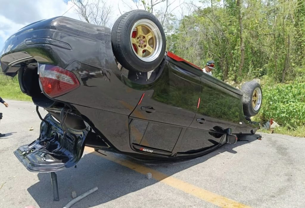 Conkal, Yuc. a 10 de agosto 2024.- Una volcadura ocurrida en la vía Conkal -Chicxulub Pueblo, dejó como saldo cuantiosos daños materiales y dos jóvenes lesionados.