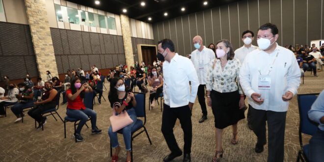 El Gobernador afirmó que han sido 2 años muy complicados para la industria de los encuentros y convenciones presenciales, y éste es el primer evento que tenemos en Yucatán, de estas dimensiones y en estas condiciones, toda vez que la etapa de restricciones ha llegado a su fin, gracias a que el proceso de vacunación se encuentra muy avanzando, ya que los jóvenes de 18 a 29 años, que eran los últimos que faltaban, ya tienen su primera dosis.