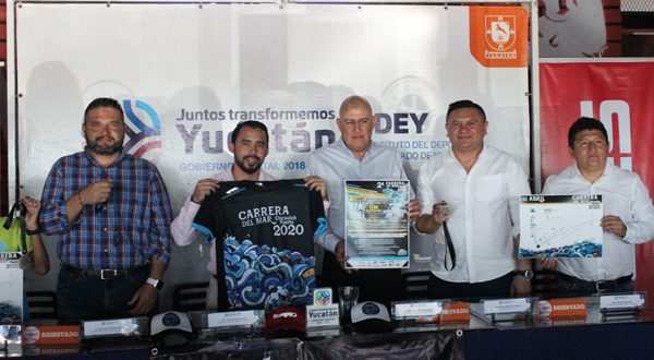 Mérida, Yucatán, 4 de marzo de 2020.- Este 12 de abril desde las 7 horas se realizará la Carrera del Mar en Chicxulub Puerto que saldrá a las 7 horas y que tendrá una distancia de 11 kilómetros para la carrera atlética y 6 kilómetros para la caminata, evento deportivo que fue presentado este miércoles en el Viejo Molino Sport por sus organizadores y personal del Instituto del Deporte de Yucatán (IDEY)