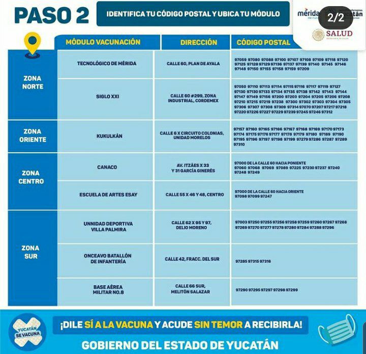 Cabe recordar que el macrocentro o módulo de vacunación que les corresponde será con base en su Código Postal, los cuales estarán distribuido de la siguiente forma: