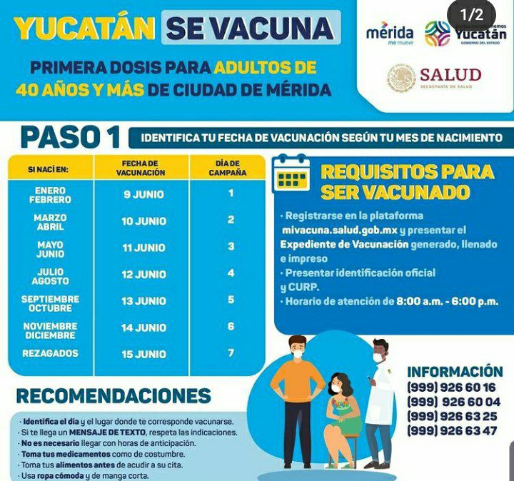 *Mañana miércoles 9 de junio iniciará en Mérida la vacunación contra el Coronavirus para personas de 40 a 49 años de edad*