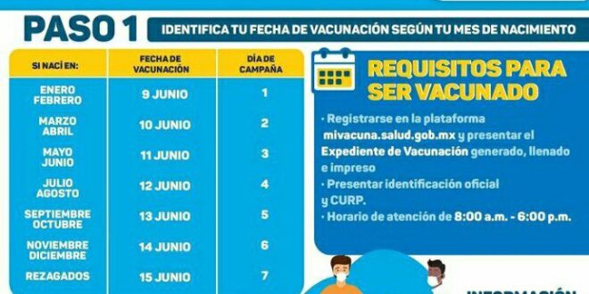 -Se destinará el día martes 15 de junio para las personas de este rango de edad que por algún motivo o razón no pudieron acudir a su cita de vacunación.