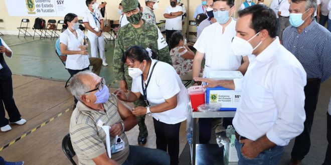 En ese marco, Vila Dosal agradeció al Coordinador Estatal para la Vacunación, así como al Ejército Mexicano, a la Secretaría de Bienestar, al Ayuntamiento de Mérida y a la Secretaría de Salud Estatal, por el trabajo coordinado y eficiente que se realiza para el proceso de vacunación en Yucatán, el cual, resaltó, es diferente a lo que está pasando en otros estados del país.