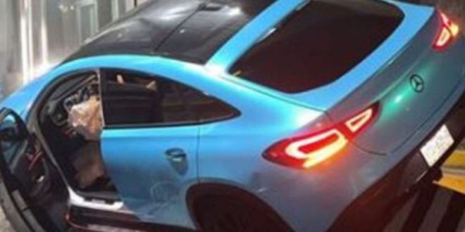 Yeri Mua publicó en sus historias de Instagram una fotografía en se ve un automóvil de la marca Mercedes-Benz sobre un muro de contención de lo que parece ser una caseta de peaje, además de que se observan líquidos en el asfalto y la bolsa de aire del conductor activada.