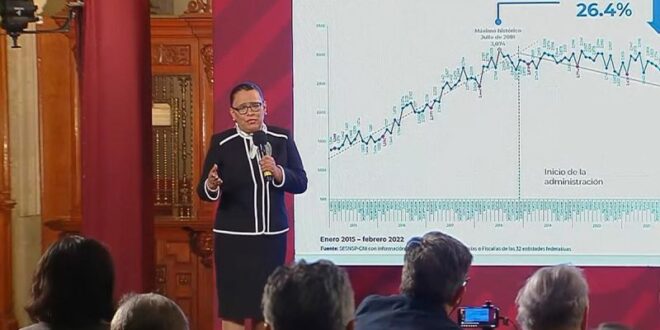 En la conferencia mañanera, encabezada por el presidente, Andrés Manuel López Obrador (AMLO), Rosa Icela Rodríguez informó que en los últimos 9 meses se registró una tendencia a la baja en la mayoría de los delitos federales.