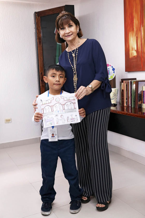 La secretaria felicitó a Pech Cano y a quienes facilitaron el registro de su dibujo, que compitió con los de 95 mil colegios de todo el país. “Me da mucho gusto que Yucatán siga destacando con talentosos niños; esto, sin duda, es resultado de la coordinación entre padres de familia, maestros y alumnos”.