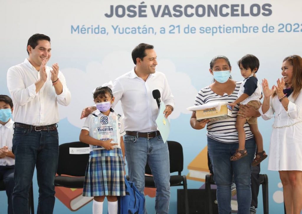 Mérida, Yucatán, 21 de septiembre de 2022.- Con la entrega de útiles escolares, uniformes y desayunos del programa “Impulso Escolar” a estudiantes de nivel básico, el Gobernador Mauricio Vila Dosal continúa refrendando su compromiso con la educación y desarrollo de la niñez yucateca, además de ayudar a la economía de los padres de familia, ya que estos materiales representan un ahorro de 2,850 pesos por cada hijo.