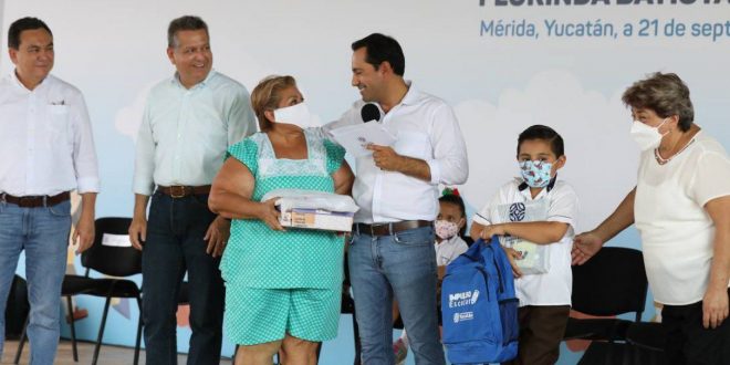 Mérida, Yucatán, 21 de septiembre de 2022.- Con la entrega de útiles escolares, uniformes y desayunos del programa “Impulso Escolar” a estudiantes de nivel básico, el Gobernador Mauricio Vila Dosal continúa refrendando su compromiso con la educación y desarrollo de la niñez yucateca, además de ayudar a la economía de los padres de familia, ya que estos materiales representan un ahorro de 2,850 pesos por cada hijo.