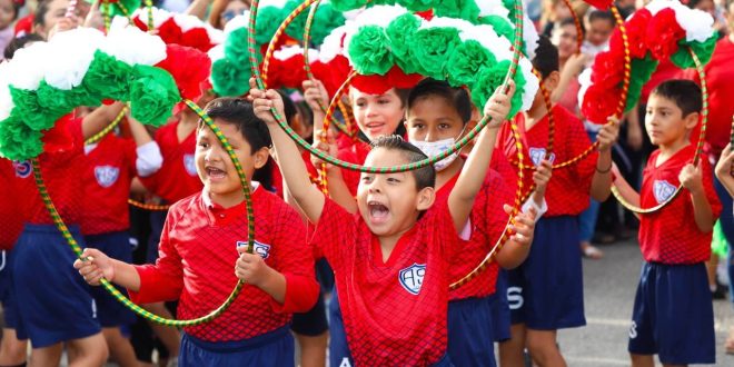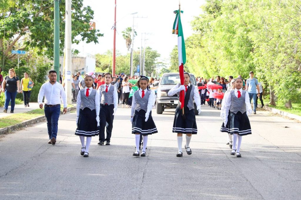 Estudiantes de primaria participan en colorido desfile en Ciudad Caucel