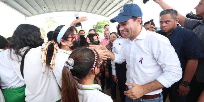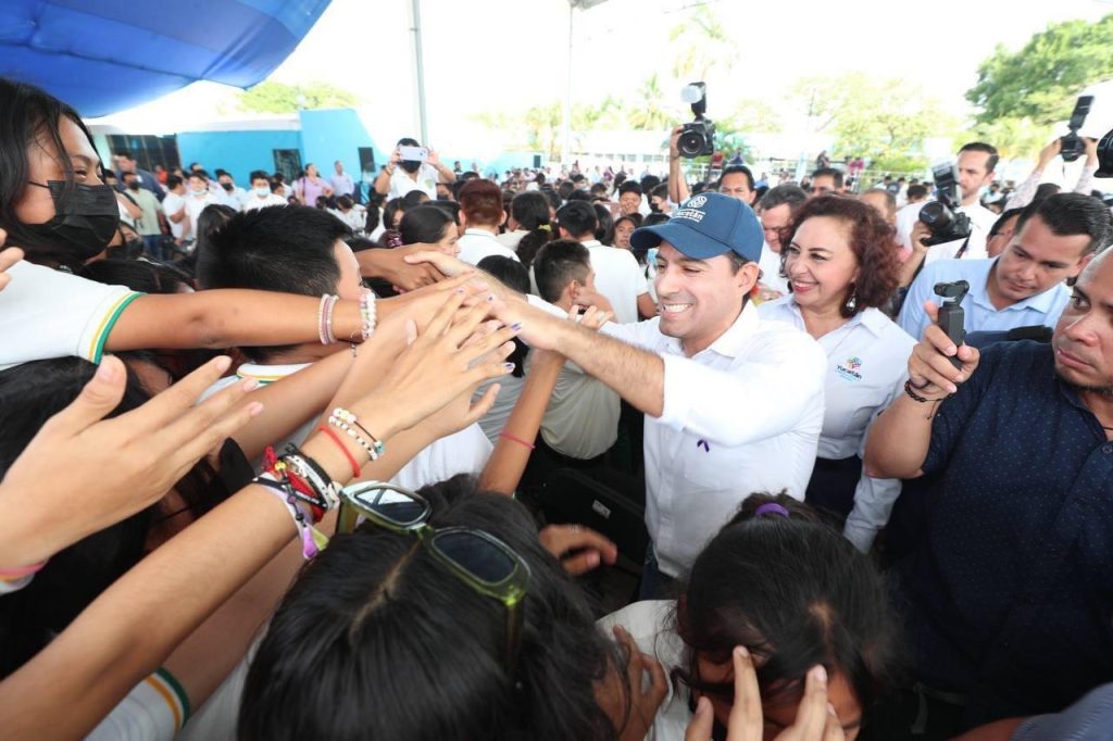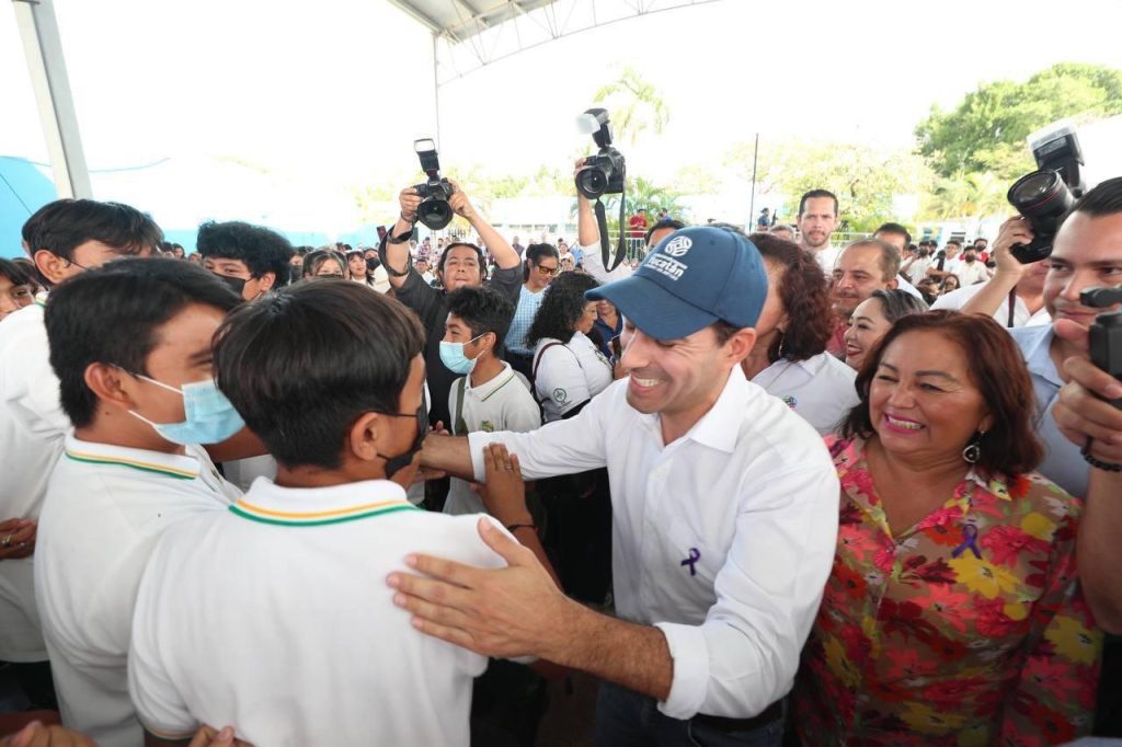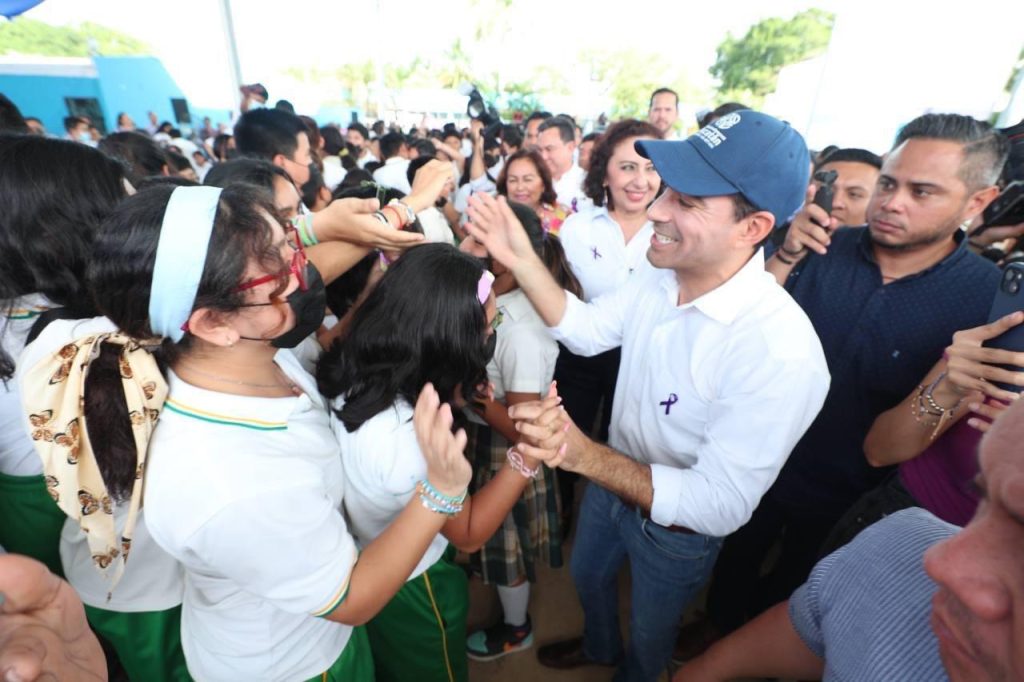 Mérida, Yucatán, 8 de marzo de 2023.- Con un gran ambiente de festejo, jóvenes estudiantes de la Escuela Secundaria y Preparatoria “Serapio Rendón”, recibieron al Gobernador Mauricio Vila Dosal en agradecimiento a las acciones que impulsa para transformar la educación en el estado.