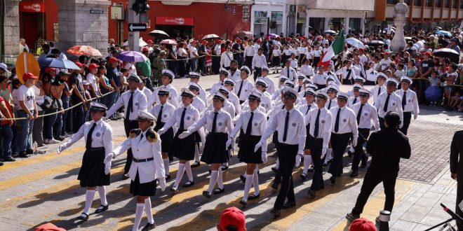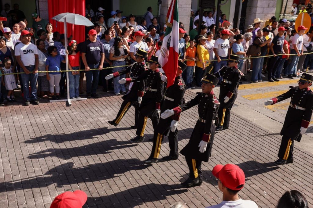 Mérida, Yucatán, a 17 de septiembre de 2025.- Con la participación de 2,741 estudiantes de 47 planteles de secundaria, bachillerato y nivel superior, se realizó el desfile cívico-militar conmemorativo por el 215º Aniversario del Inicio de la Independencia de México, el cual comenzó con el izamiento de la Bandera en la Plaza Grande de Mérida.