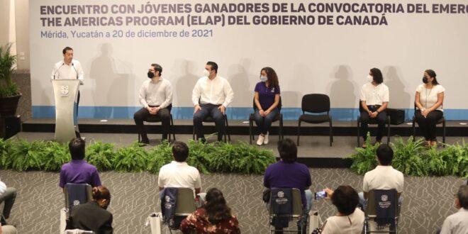 En el Centro de Convenciones “Yucatán Siglo XXI”, Vila Dosal sostuvo un encuentro con los estudiantes de ambas instituciones del estado, que viajarán en breve a tierra canadiense, luego de salir ganadores en la convocatoria del Emerging Leaders in the Americas Program (ELAP) del Canadian Bureau of International Education, en colaboración con el Gobierno de Yucatán.