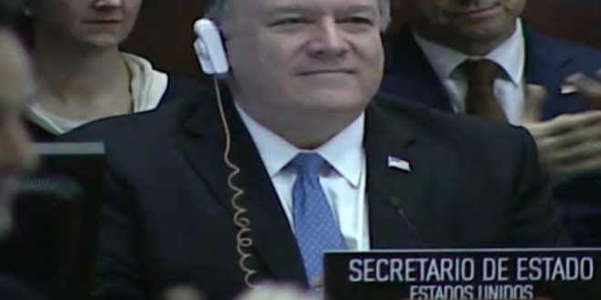 El secretario de Estado de los Estados Unidos, Mike Pompeo expuso en la reunión especial del Consejo Permanente de la OEA, que su gobierno no reconoce el ‘régimen ilegítimo’ de Nicolás Maduro y que están listos para ‘restablecer la democracia’ en Venezuela.