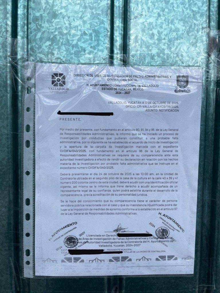 VALLADOLID, Yuc., 22 de octubre 2025.- El Ayuntamiento de Valladolid destituyó al secretario de Gobernación, Antonio N.Ch., tras ser denunciado por presunto acoso sexu4l ante la Fiscalía General del Estado.