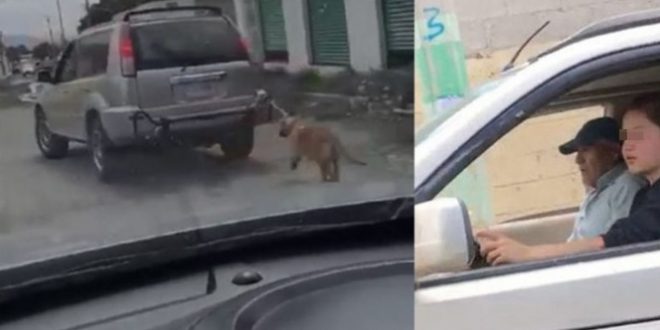 MINERAL DE LA REFORMA.- En Hidalgo, una mujer y un hombre fueron exhibidos cuando desde una camioneta ataron a un perro a la unidad y lo “paseaban” de forma inhumana.