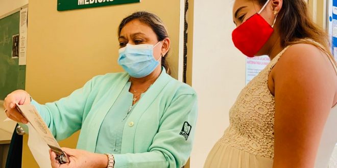 El Instituto Mexicano del Seguro Social (IMSS) en Yucatán reitera a las embarazadas la importancia de acudir a vacunarse contra COVID-19, seguir con las medidas de higiene, así como continuar con su control prenatal y/o consultas agendadas, con la finalidad de proteger su salud y la de sus bebés.