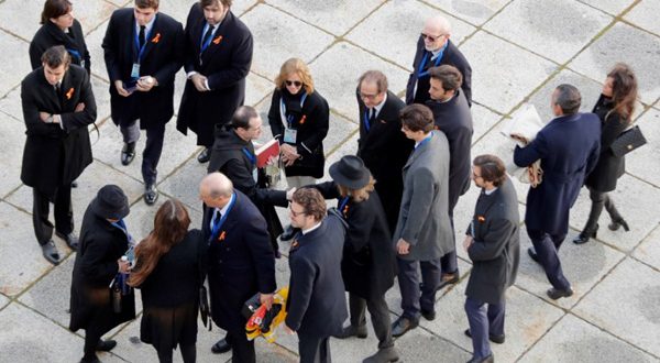 Un total de 22 miembros de la familia directa del caudillo – siete nietos, sus cónyuges y los bisnietos – acudieron al Valle de los Caídos vestidos de negro y con lazos con la bandera española en solapas de chaquetas y abrigos.