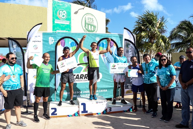 Dino Castro Domingo con tiempo de 37.04 minutos fue el ganador de la 9a Carrera con Causa del Instituto Tecnológico Superior de Progreso de 11 kilómetros, en la que participaron más de mil corredores y que permitirá mantener las becas alimenticias para alumnos que cursan sus ingenierías en la Casa de Estudios de la costa yucateca.