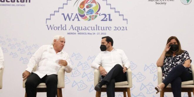 Acompañado del presidente de la Asociación Mundial de Acuacultura (WAS), Antonio Garza de Yta, y la representante de la Organización de Naciones Unidas para la Alimentación y Agricultura (FAO) México, Lina Pohl Alfaro, Vila Dosal encabezó el inicio de este encuentro, el más importante a nivel mundial en la materia, que se realiza desde este día al 27 de mayo, con ponencias, talleres, reuniones, exposición comercial, visitas técnicas a granjas o plantas y otras actividades, para construir redes profesionales.