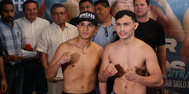 Este mediodía se realizó la ceremonia de pesaje en el Hotel Ibis Styles, en donde el sonorense Yahir “Pequeña Maravilla” Frank (54.300 Kg) y el nicaragüense Carlos “Chocorroncito” Buitrago (54.500) dieron el peso sin mayor problema. Ahora esperan al campanazo de mañana que ponga acción al combate en peso mosca a 10 rounds.
