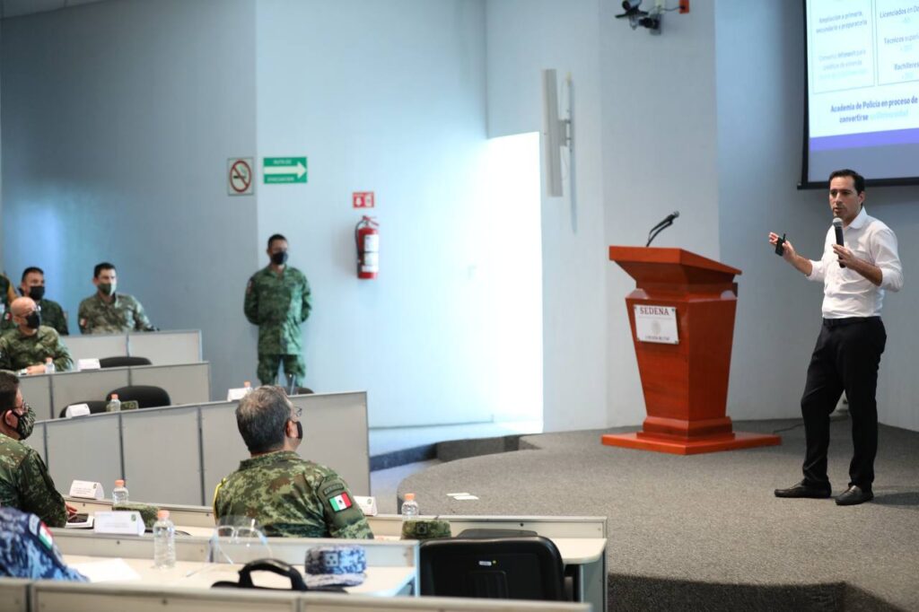 Al impartir la conferencia “El Estado de Yucatán como modelo de desarrollo y seguridad”, en el auditorio multimedia de la X Región Militar, Vila Dosal presentó un balance y una prospectiva de la situación política, económica y social de la entidad, luego de las afectaciones por la pandemia y uno de los años más complicados en la historia para sus habitantes.