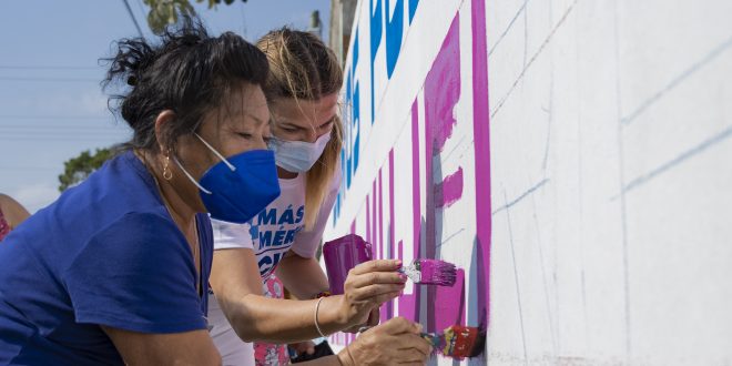 “Hoy quisimos expresarnos fuerte a través de un mural como este en la Portes Gil (de unos 20 metros de largo) en un predio cuya barda se donó para expresar este mensaje” explicó la candidata.