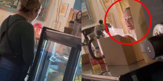 Aparentemente, hubo una confusión en el pedido de la mujer, pero poco después de que la empleada le hiciera saber que no fue irresponsable y le diera el total de su orden, la extranjera reaccionó agresivamente y le pegó a los objetos que estaban sobre el mostrador, los cuales cayeron al suelo.