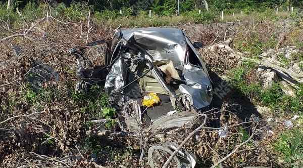 Tras proyectar contra unas rocas, el conductor Erick A.C., de 28 años, quien llevaba como copiloto a su esposa Victoria Margarita T.C., de 30. Ambos son vecinos de Kinchil e iban a laborar a la ciudad de Mérida.