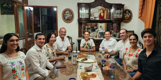 “La primera felicitación para mi mamá por sus 85 años fue de Claudia Sheinbaum, fue un gusto recibirla en casa y en familia, es una mujer que al igual que mi mamá ha trabajado y luchado toda su vida y que pronto hará historia en México. Gracias por este detalle junto a Huacho Díaz Mena y Rommel Pacheco Fue una velada que recordaremos con mucho cariño y admiración toda la familia Cervera Hernández”, escribió en sus redes sociales.