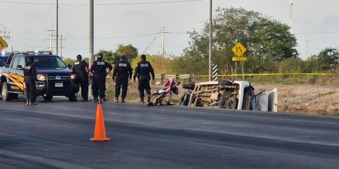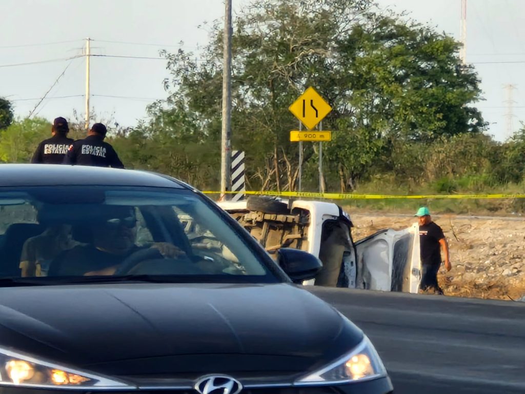 El incidente se registró cuando el conductor del vehículo, quien se dirigía a Mérida en presunto estado de ebriedad, dormitó al volante y perdió el control, provocando que la unidad saliera del camino.