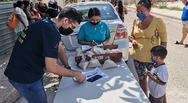 Gracias a la donación de la Arquidiócesis de Yucatán presidida por Monseñor Gustavo Rodríguez Vega, y el padre Ricardo Antonio Díaz Galleguillos, de la parroquia San José Obrero, y varios colaboradores y donantes, cien familias recibieron apoyo alimenticio, en las instalaciones de la casa de cultura “Aquiles Córdova Morán”.