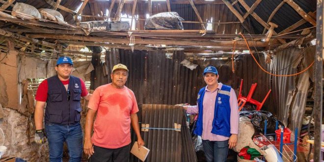 Por instrucción de Vila Dosal, personal del Gobierno del Estado llevó a cabo la distribución de estos paquetes de láminas en favor de 23 familias de esa localidad que resintieron el impacto del fenómeno metereológico el pasado viernes, a fin de que puedan reparar los daños que sufrieron sus casas.