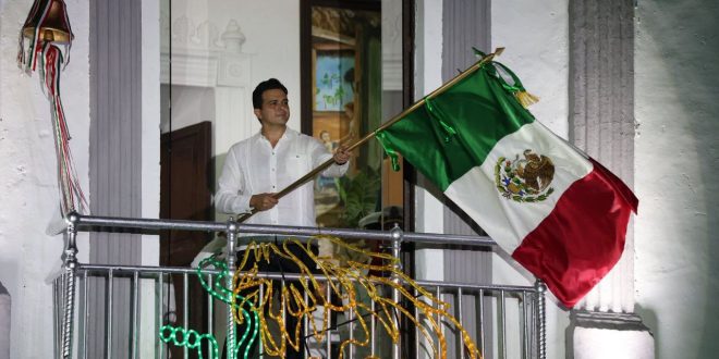 Tras dar lectura del acta de Independencia Constitutiva de México de 1821, por parte del Secretario Municipal, José Efrain Escalante Dominguez, y de realizar los honores al lábaro patrio, esto a cargo de la escolta y banda de guerra de la IX Zona Naval, Rihani González vitoreo los nombres de quienes lucharon por la libertad y un trato justo en el país, para después hondear la bandera y hacer sonar las campanas; momento en el que niños, jóvenes y adultos compartieron con orgullo.